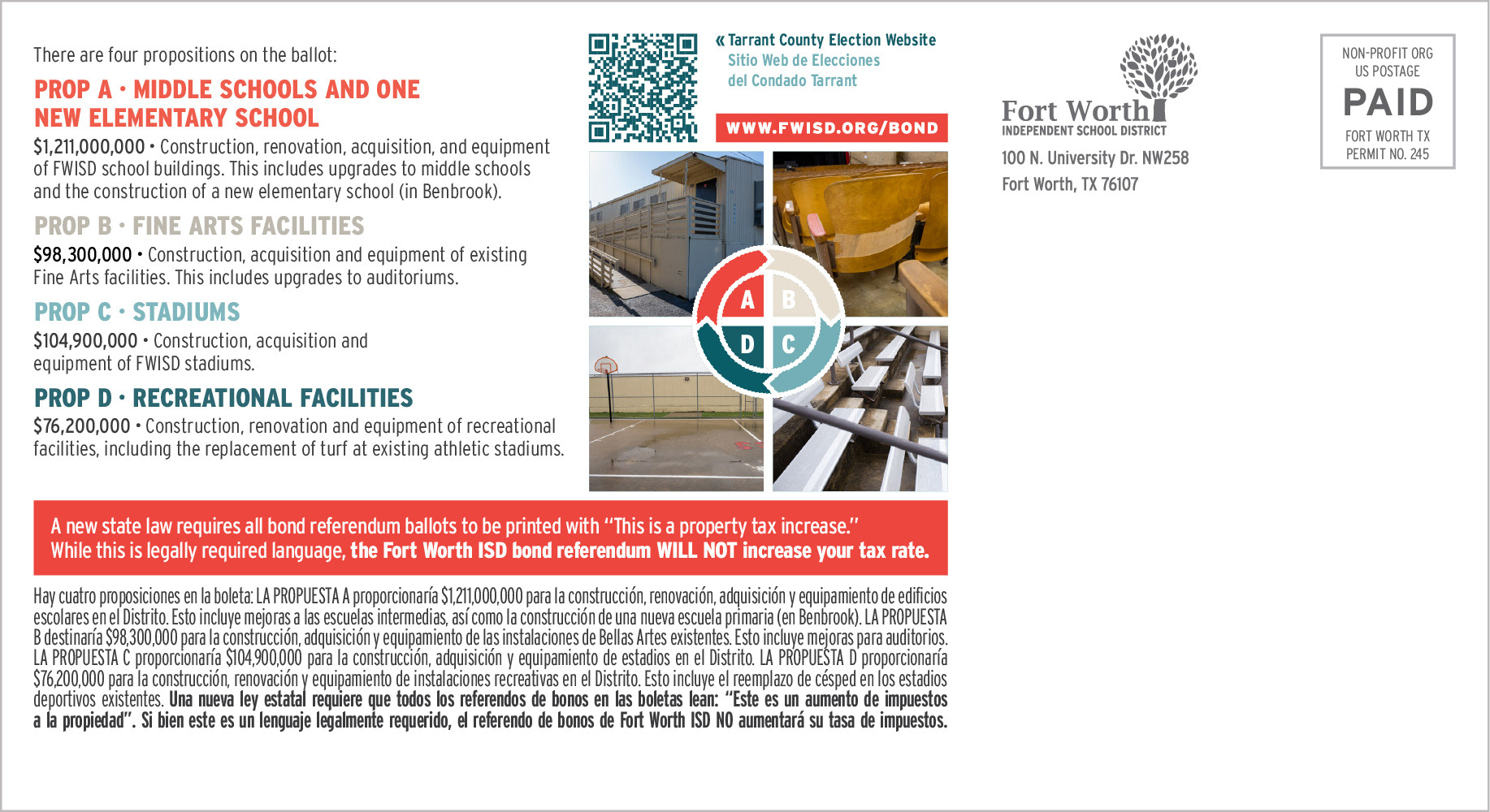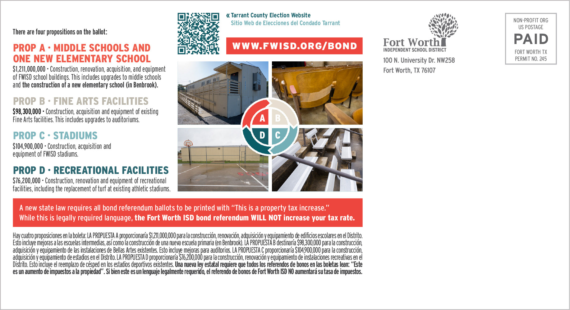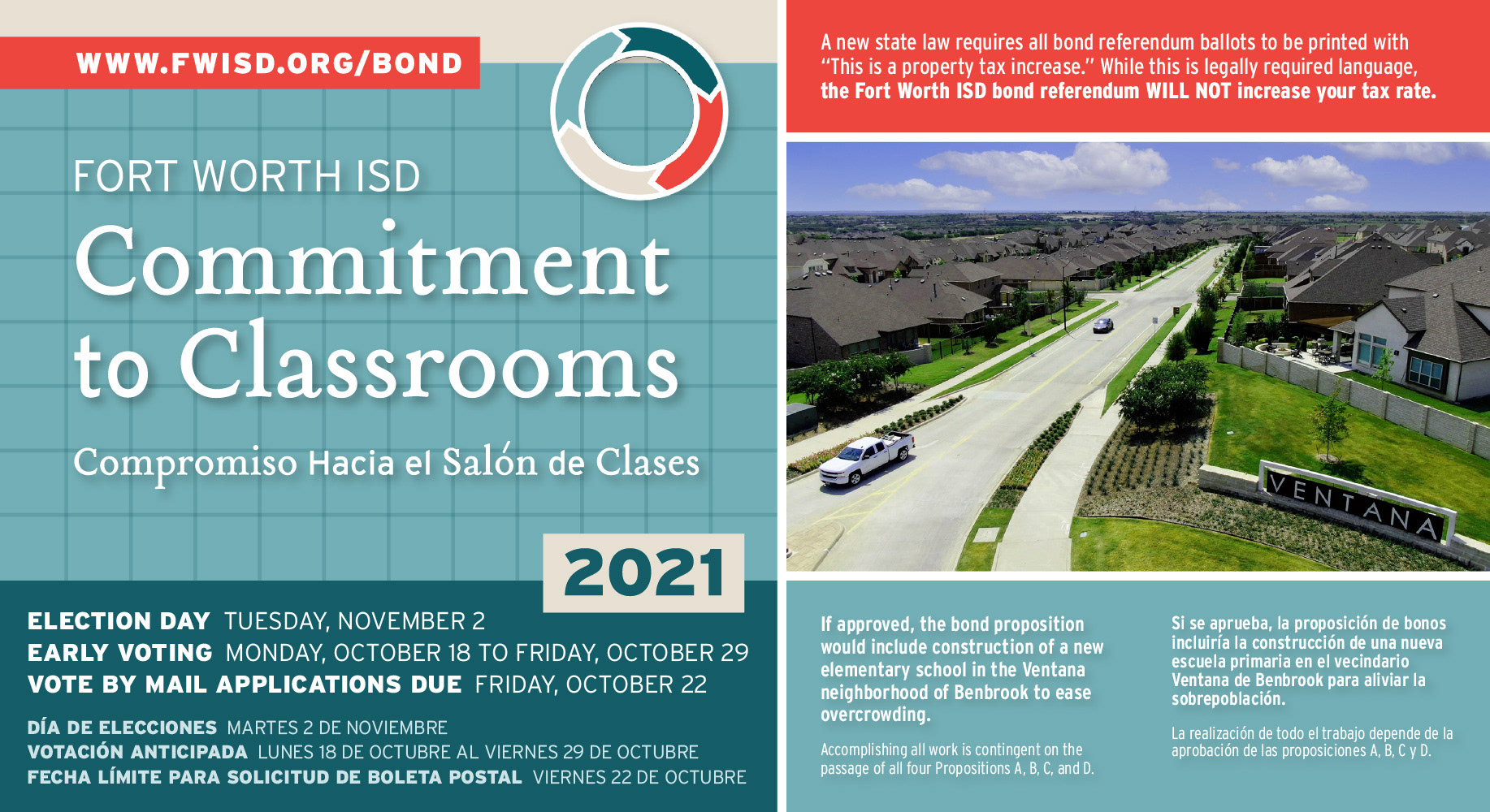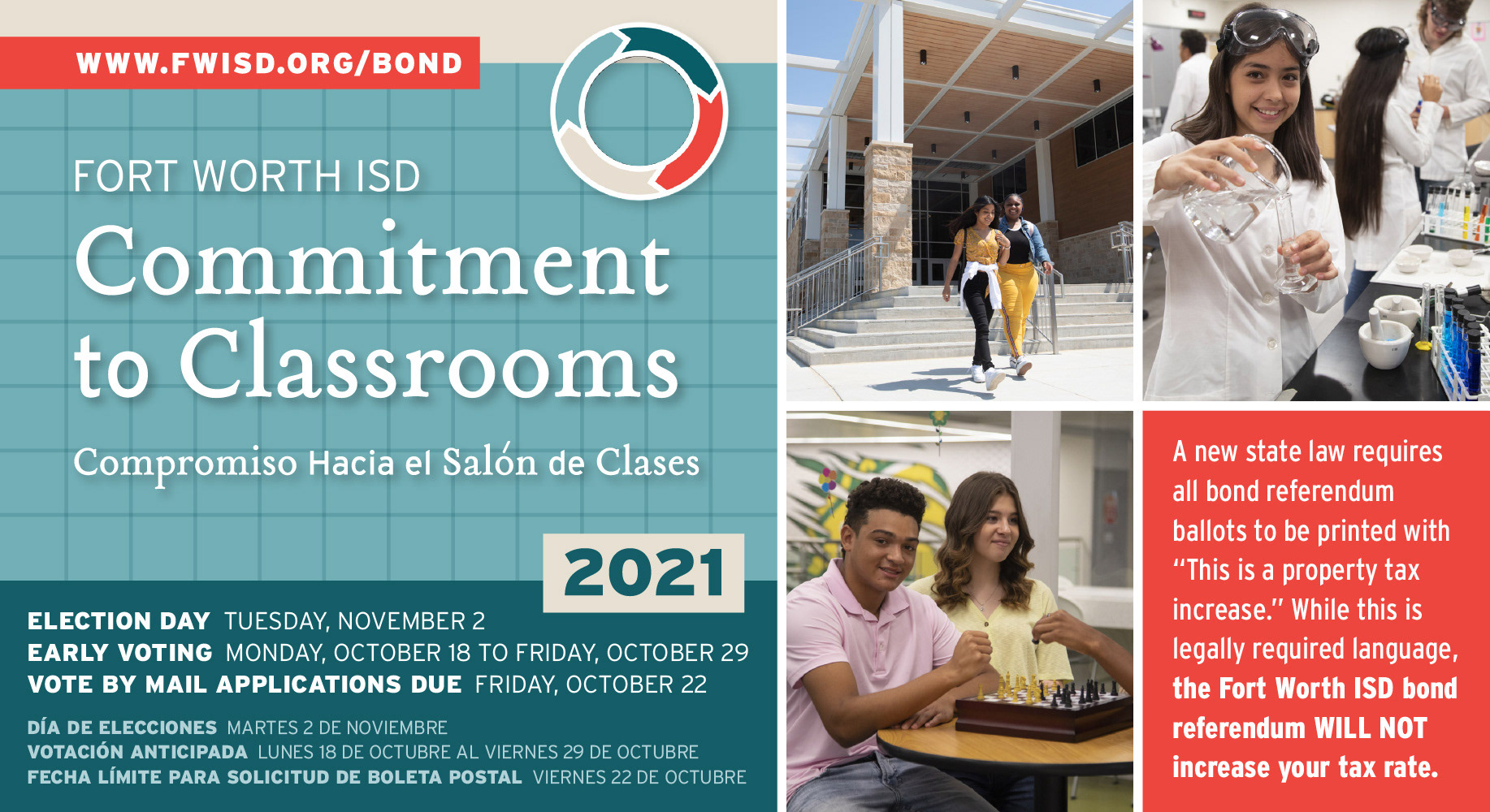 Fort Worth ISD's 2021 Bond proposal (Commitment to Classrooms) passed one proposition worth $1.2 billion for the construction and renovation of middle schools.