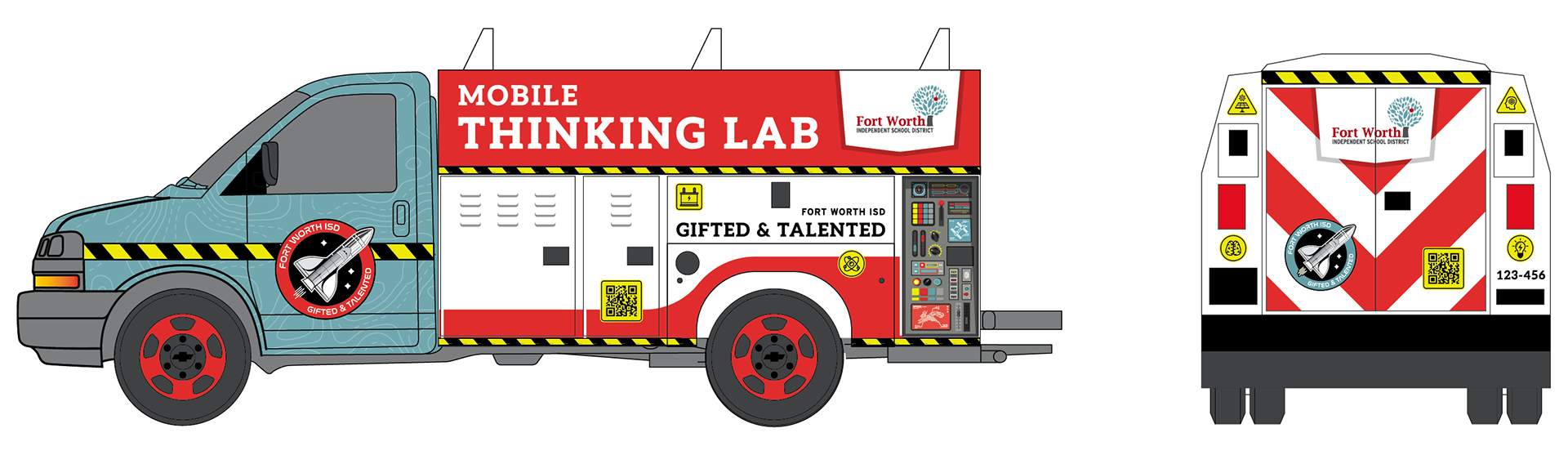 These vehicles tie in the NASA-themed branding I created for them a couple of years prior: